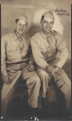 − | Albert enlisted and left for the war in 1942 shortly after Blanche got married. According to the records, Bill enlisted and left in the Spring of 1943. By this time, Cecile had been married a while and been having children - her first, Ronald, was born in 1935 just before Bobby was born. Rosa's house emptied out of older children almost all at once. [[File:BillduringWWII.jpg|left|thumb|250px|Bill during WWII.]] | + | Albert enlisted and left for the war in 1942 shortly after Blanche got married. According to the records, Bill enlisted and left in the Spring of 1943. By this time, Cecile had been married a while and been having children - her first, Ronald, was born in 1935 just before Bobby was born. Rosa's house emptied out of older children almost all at once. [[File:BillduringWWII.jpg|left|thumb|250px|Bill during WWII.]] [[File:Bill-friend-c43.jpg|right|thumb|250px|Bill and an unidentified friend in 1943 before shipping out to Europe.]] |